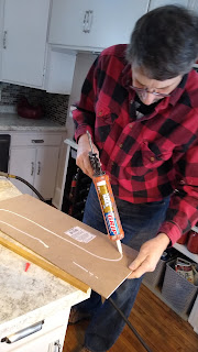 He ran thick beads of construction adhesive around on the back sides of the panels.