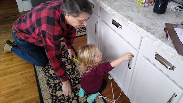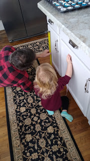 No, we didn't find any beetle bugs in the woods of the cabinets. LOL. We just found a little three-year-old Beetle Bug named Claire who wanted to come over and help us today.
