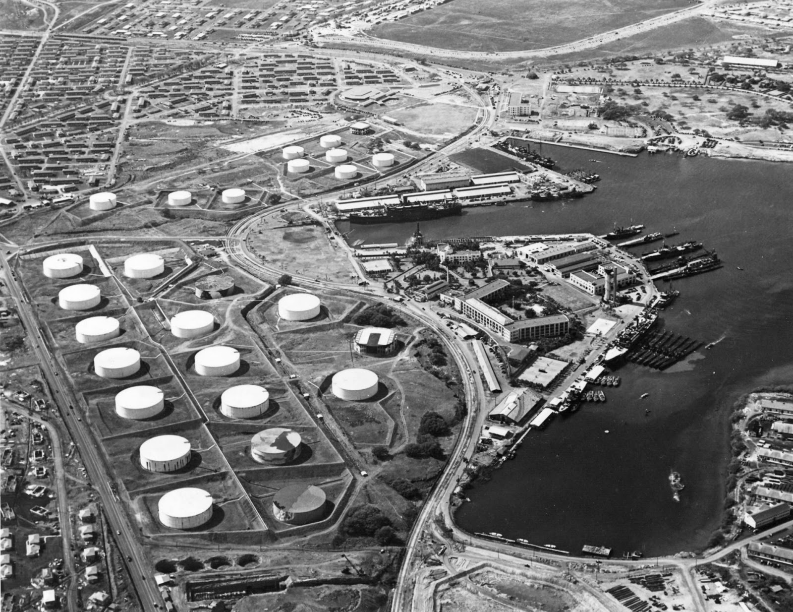 In 1924 construction began on what would become 60 large above ground oil tanks (above), which could store 4.5 million barrels of fuel for the Pacific Fleet.